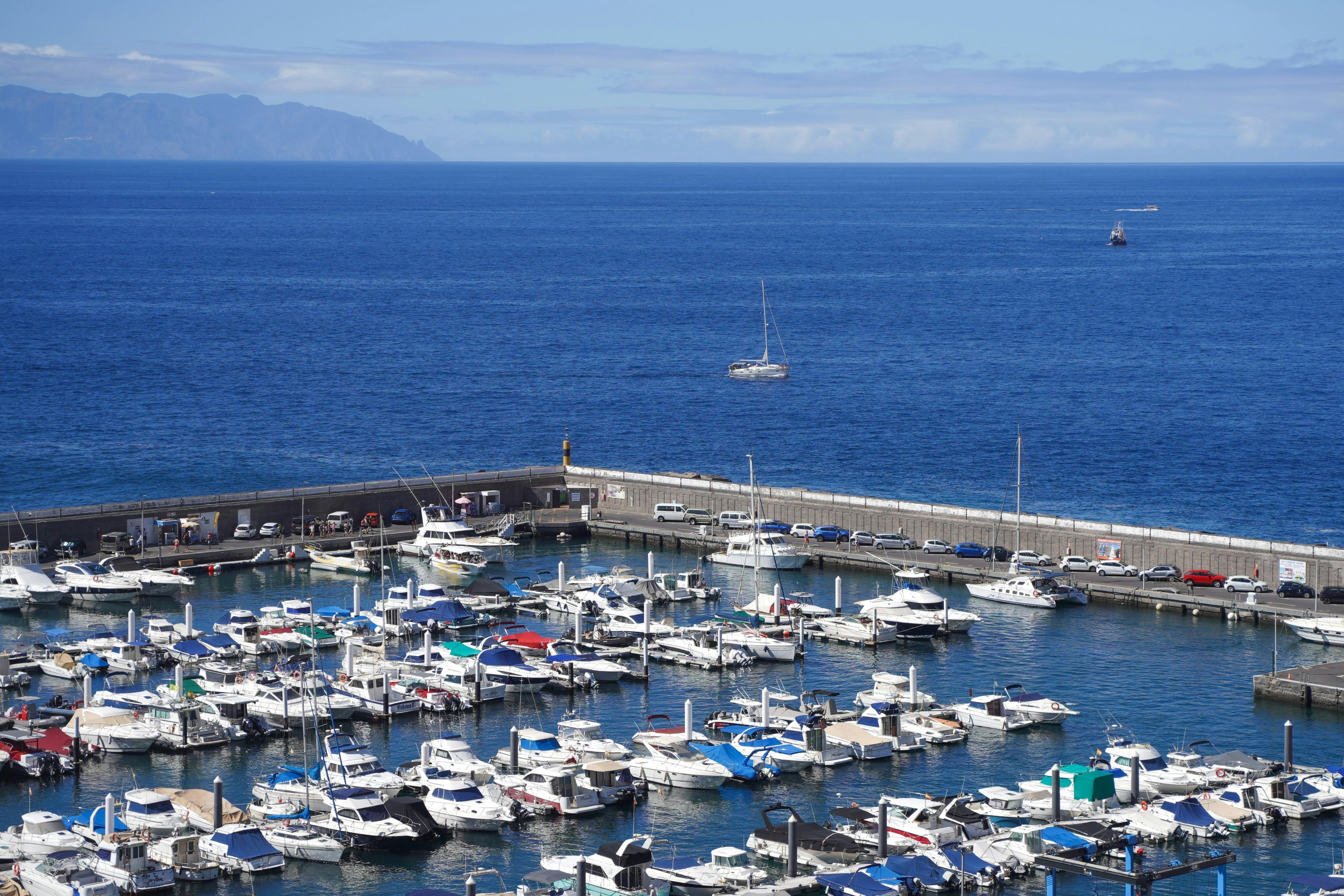 ロス・ジガンテスの入り江をクルーズしながらイルカやクジラを探す
