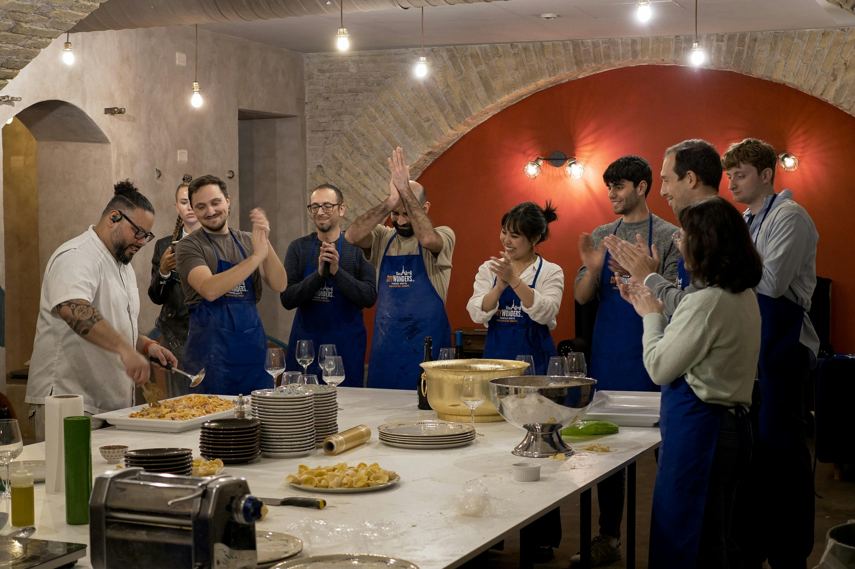 ローマ:トラステヴェレでパスタづくりとワインテイスティング(即日発券)