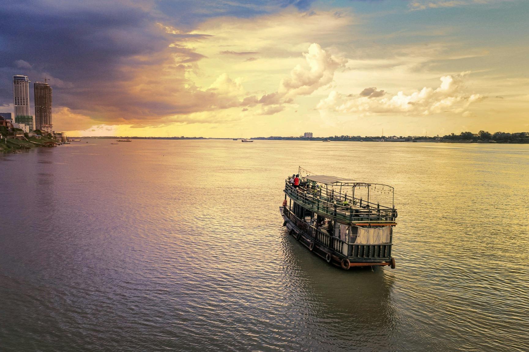プノンペン:自転車とボートで行く夕日ガイド付きツアー(送迎付き)(即日発券)